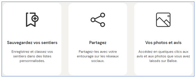 S’inscrire gratuitement à Balise, ce n’est pas simplement rejoindre une grande communauté de randonneurs. C’est aussi accéder à plusieurs fonctionnalités: