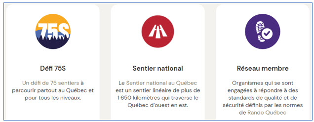 Dans sa nouvelle version, Balise intègre 3 nouvelles icônes liées aux différents programmes de Rando Québec: